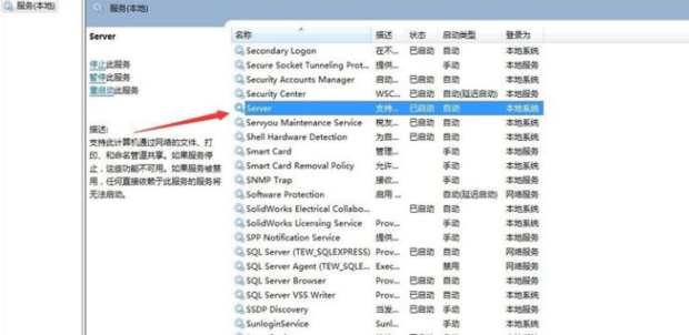 4.最后找到【Server】服務(wù),看是否也正常運(yùn)行,否則也修改為【啟動】
