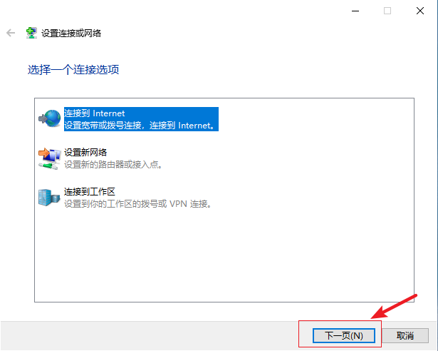 3.在以下頁面選擇【連接到Internet】,然后點擊【下一頁】繼續操作。