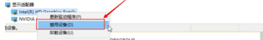4.鼠標右擊集成顯卡,然后選擇【禁用設備】。