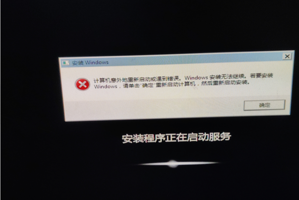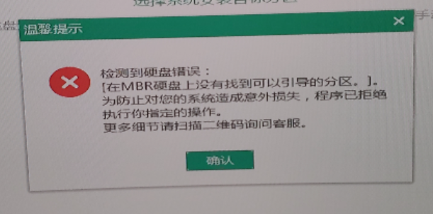 4. 實際操作完會回到上面報錯的地方,點擊 ‘確定’ 后等待重啟,重啟后會進入到系統界面