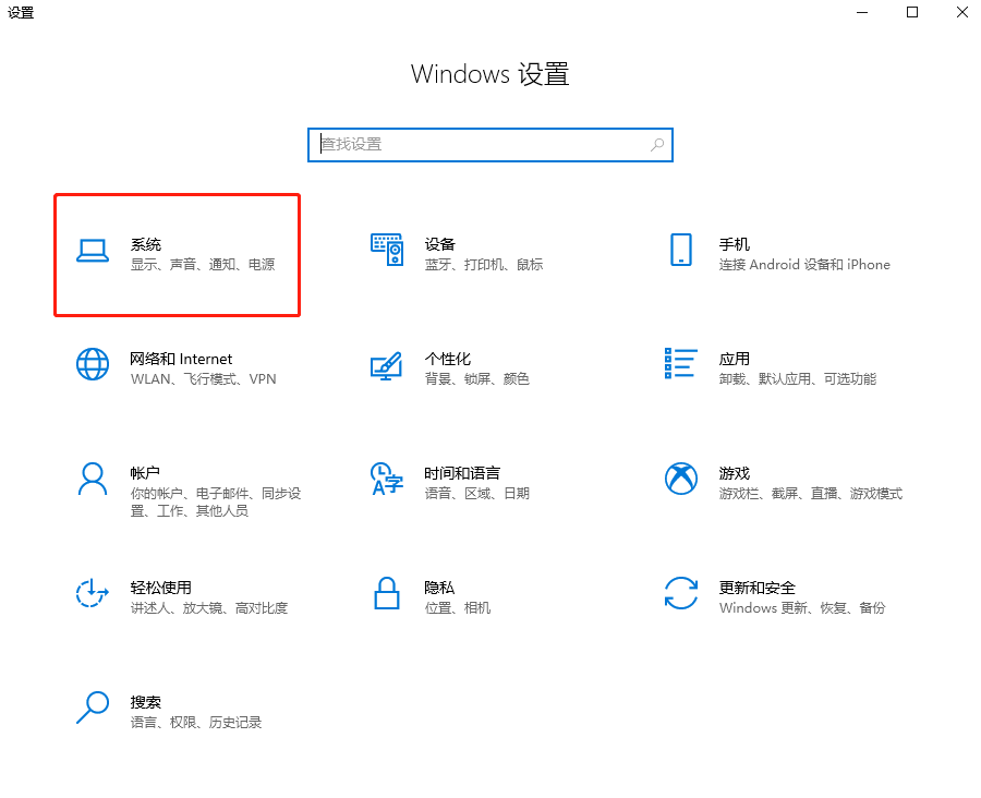1.點擊win10桌面左下角開始菜單圖標,隨后選擇“設置”進入。在打開的windows設置界面中選擇“系統”進入。