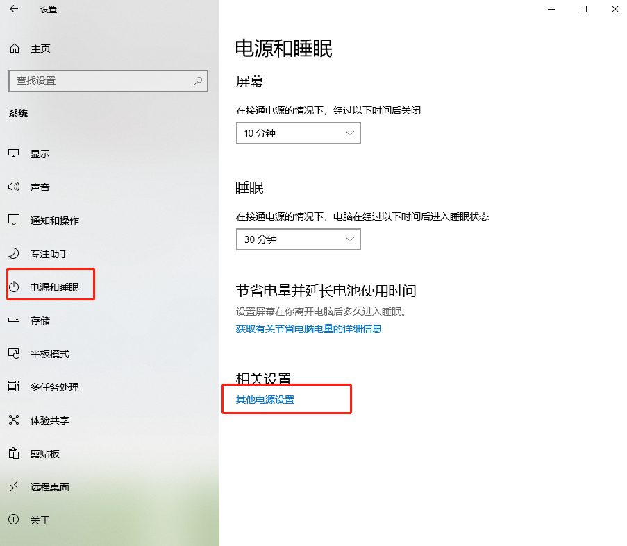 2.選擇“電源和睡眠”選項,最后點擊“其他電源設置”即可。