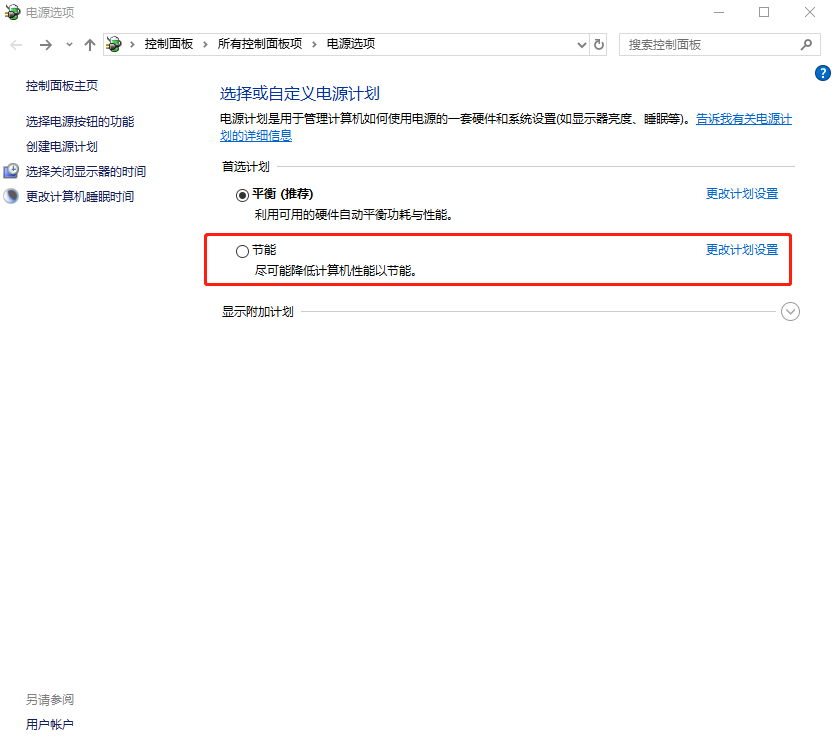 3.此時在以下界面中將電腦設置為“節能”模式。