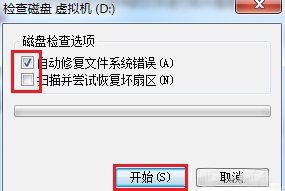 2.此時在彈出的窗口中勾選如下的兩個復選框,最后點擊“開始”按鍵。