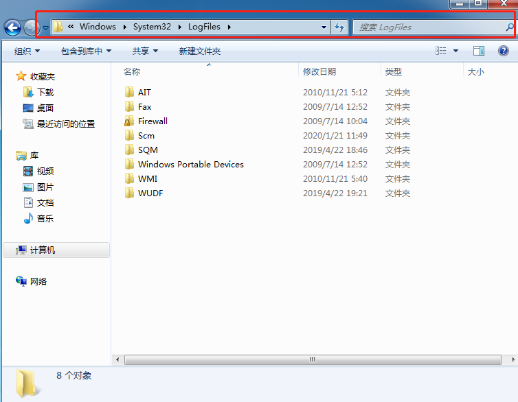 1.首先雙擊“計算機”,直接輸入以下路徑:C:\Windows\System32\LogFiles