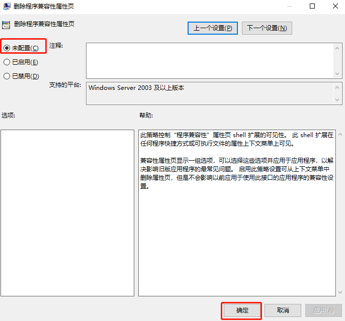 3.在打開的窗口中將其設置為“未配置”保存設置即可。