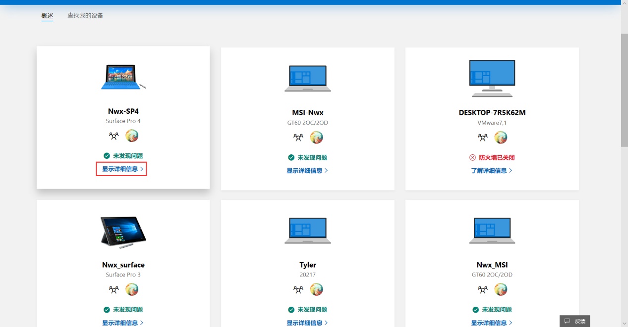 1.登錄微軟賬戶中心(https://account.microsoft.com/)后,在設備中點擊“所有設備”。