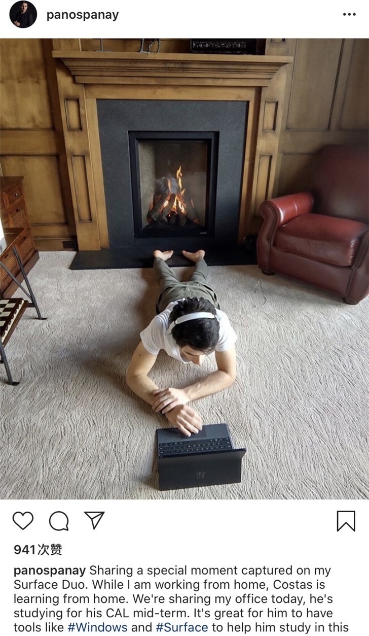 據了解,Panos Panay分享的實拍內容為自己的家人在家中學習的場景,從圖中可以看出其在使用微軟Surface Pro與一款Surface耳機。同時Panos Panay表示自己的家人在Surface系列產品的幫助下可完美地完成在線學習的任務。不過由于Panos Panay是通過instagram共享的這張照片且有一定的壓縮,尚無更多有關這張照片的具體參數信息曝光。