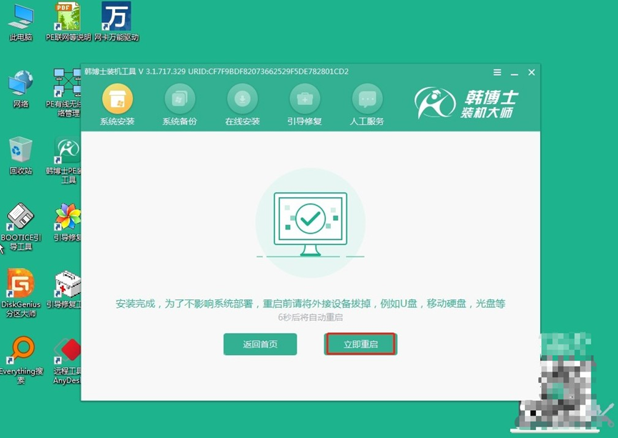 第五步,當前系統(tǒng)正在安裝和部署中,過程中請避免其他操作。安裝完成后,您只需點擊“立即重啟”,即可進入更新后的系統(tǒng)環(huán)境。
