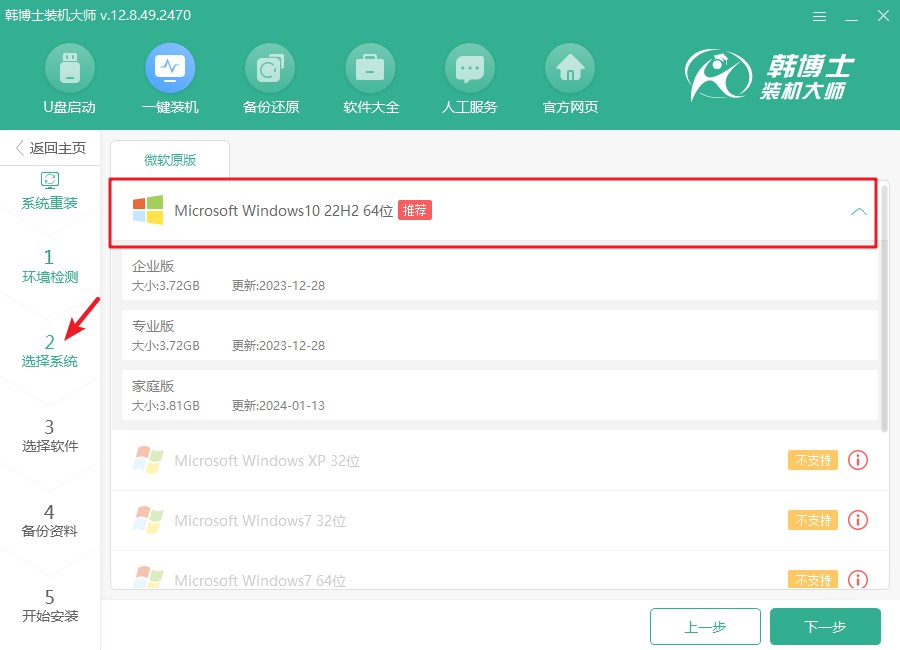 3.到達“選擇系統”這一步,確保您已選定適合的win10鏡像文件,接著點擊“下一步”。