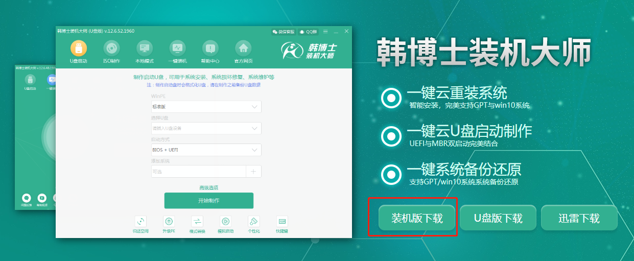 1.提前在官網(wǎng)下載韓博士裝機(jī)大師軟件,下載后退出殺毒應(yīng)用雙擊打開(kāi)韓博士。