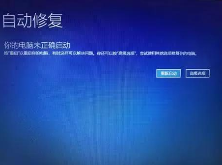 1.長按按電源按鈕開機(jī),重復(fù)步驟3次左右,系統(tǒng)會(huì)跳到自動(dòng)修復(fù)界面,點(diǎn)擊【高級(jí)選項(xiàng)】。