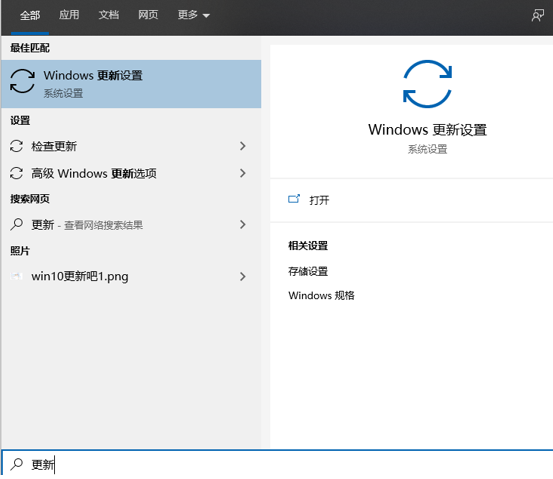 在下方的搜索框輸入【更新】,然后點(diǎn)擊第一個(gè)【檢查更新】。