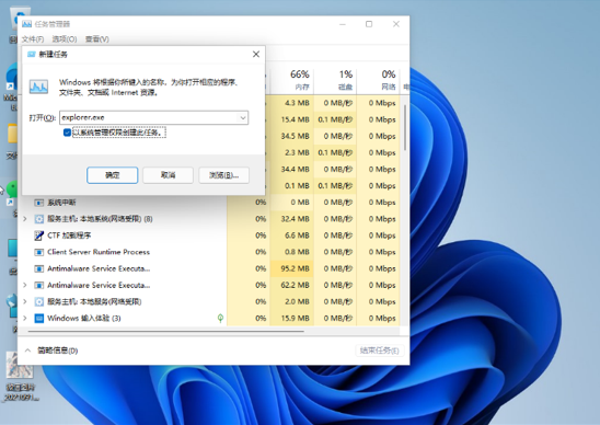 3.接著在彈出的窗口輸入【explorer.exe】,然后點擊【確定】即可。