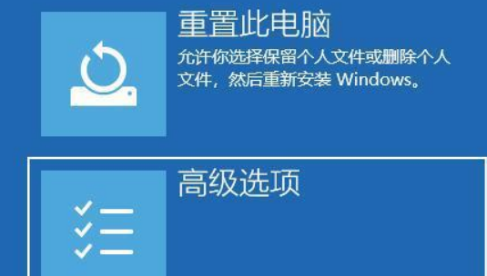 3.選擇【高級選擇】,如果進不去,就選擇【重置此電腦】。