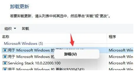 6.在卸載更新中找到可能引起電腦閃屏的更新,然后卸載掉。