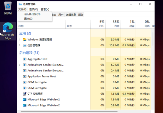 2.進(jìn)入任務(wù)管理后,依次點(diǎn)擊左上角的“文件”-“運(yùn)行新任務(wù)”。