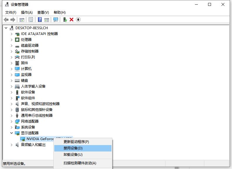 5.點開設備管理器的顯示適配器,找到顯卡,并禁用顯卡或卸載顯卡驅動即可。