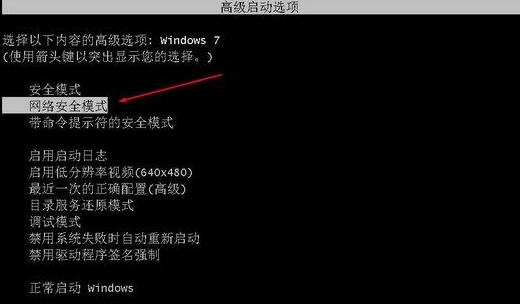 1.按電源鍵開機,待開機成功后按下F8,進(jìn)入“高級啟動選項”,找到“網(wǎng)絡(luò)安全模式”進(jìn)入。進(jìn)入安全模式后,鼠標(biāo)鍵盤一般都是正常的。