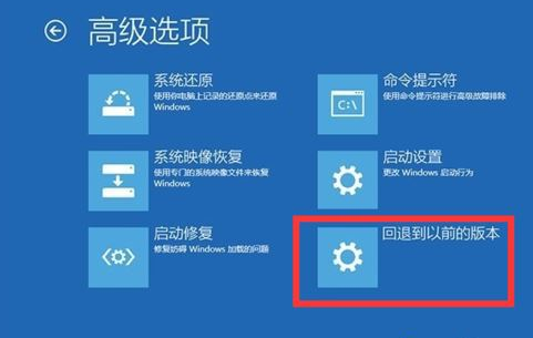 2.進(jìn)入疑難解答界面后,依次點(diǎn)擊“高級選項(xiàng)”-“回退到以前的版本”。