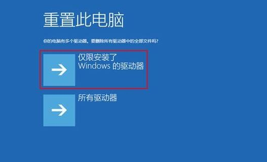 4.選擇“僅限windows”驅動器,之后便開始重置計算機,耐心等待完成再重啟電腦即可。