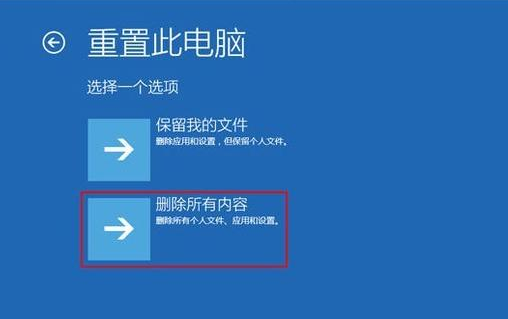 3.因為原始的win10系統被破壞了,因此需要選擇“刪除所有內容”。
