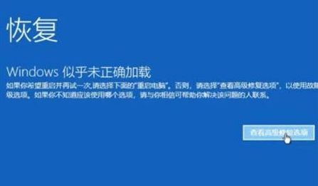 1.強制關機,之后系統會進入恢復提示,點擊“查看高級修復選項”。