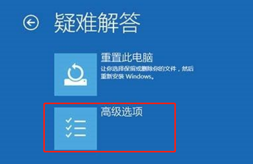 1.強制重啟電腦至少三次,直到出現“高級修復選項”界面。之后點擊進入,選擇“疑難解答”。