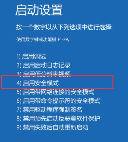 4.點擊完重啟之后,再出現啟動設置頁面,就可以選擇具體的數字進入安全模式了。