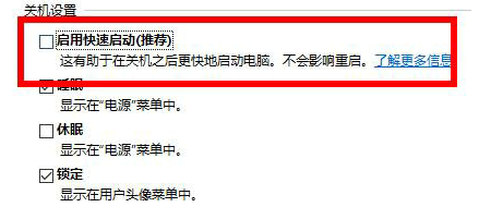 4.取消“啟用快速啟動”即可。