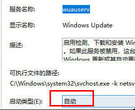 3.操作完后,返回服務(wù)界面中,再次打開“windows update”,在啟動(dòng)類型中選擇“自動(dòng)”,并點(diǎn)擊“啟動(dòng)”,再次重啟電腦即可。