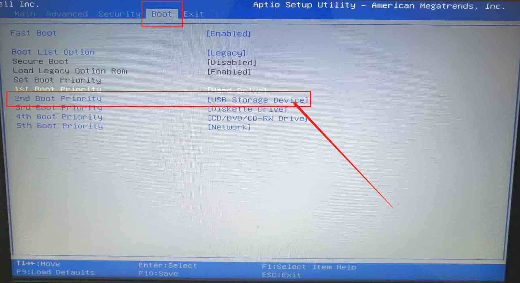 4.使用方向鍵選擇U盤設備后,使用“+”將usb選項移動至第一項并按下“F10”保存設置,U盤設置完成。